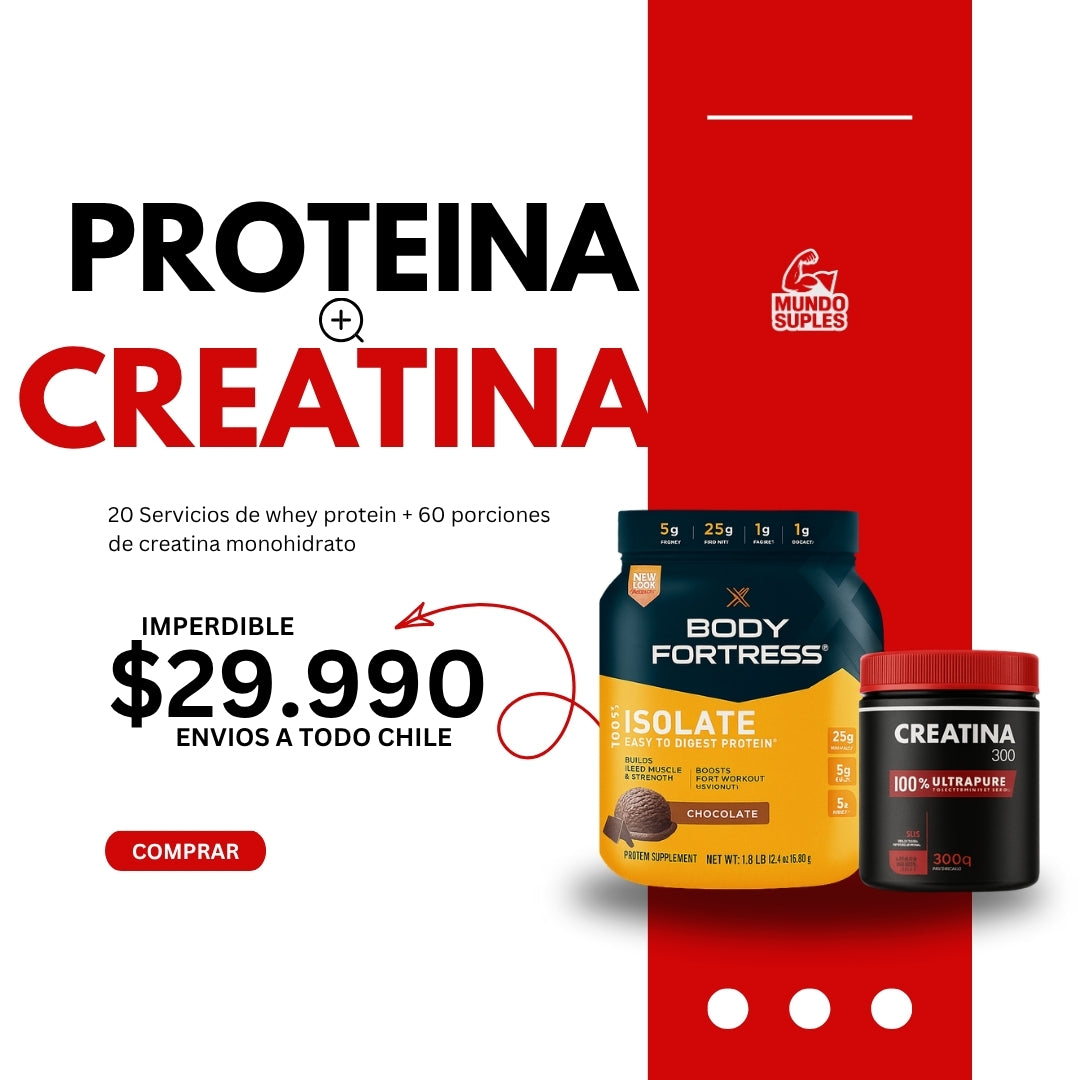 Combina lo mejor para resultados reales: Whey Protein de alta calidad para acelerar la recuperación y el crecimiento muscular, junto con Creatina monohidratada pura para aumentar fuerza y rendimiento. Esta combinación ha sido respaldada por cientos de estudios — y ahora, está al alcance de tu mano.