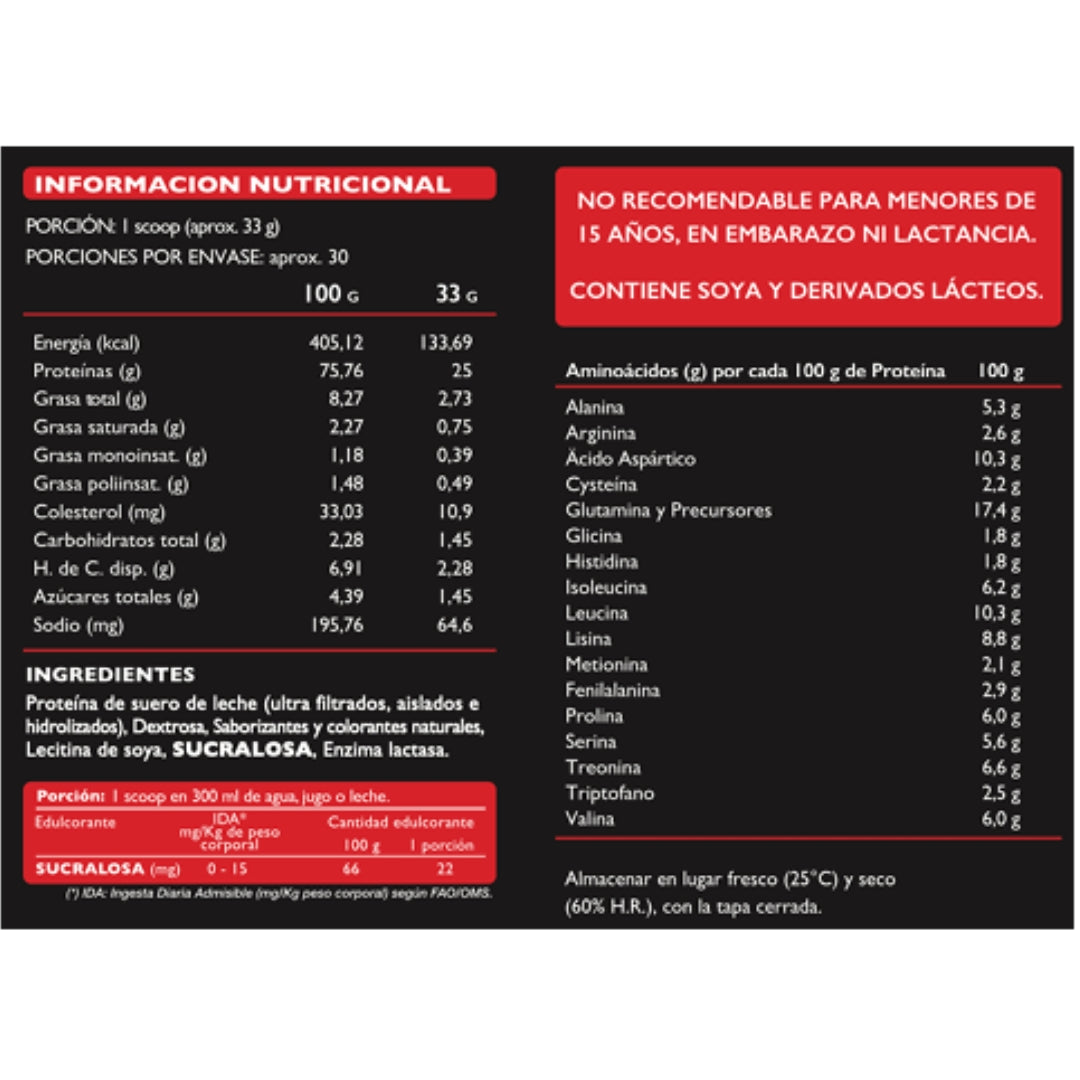 muscular, disminuye el porcentaje de grasa corporal, recupera y renueva los tejidos, mejorando la ingesta diaria de proteína. Cada porción aporta 5g de BCAA (aminoácidos de cadena ramificada)